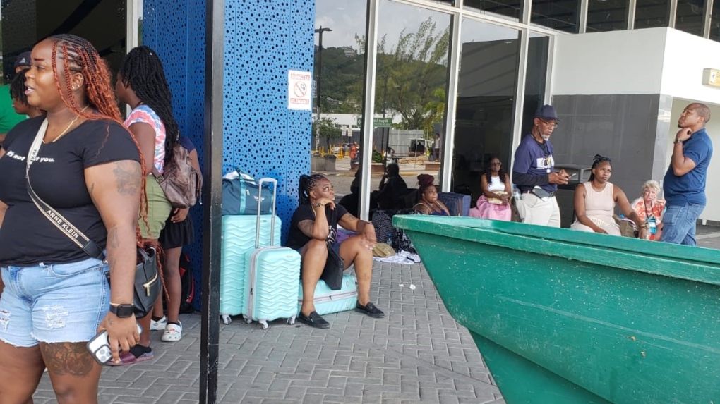 Passengers wait as flights continue to be delayed or outright cancelled at Sangster International Airport in Montego Bay, Jamaica on July 4, 2024. (Jennifer Hewitt)
